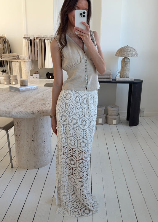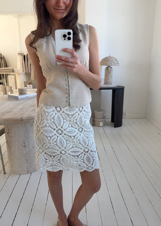 HÆKLET NEDERDEL - Hvid