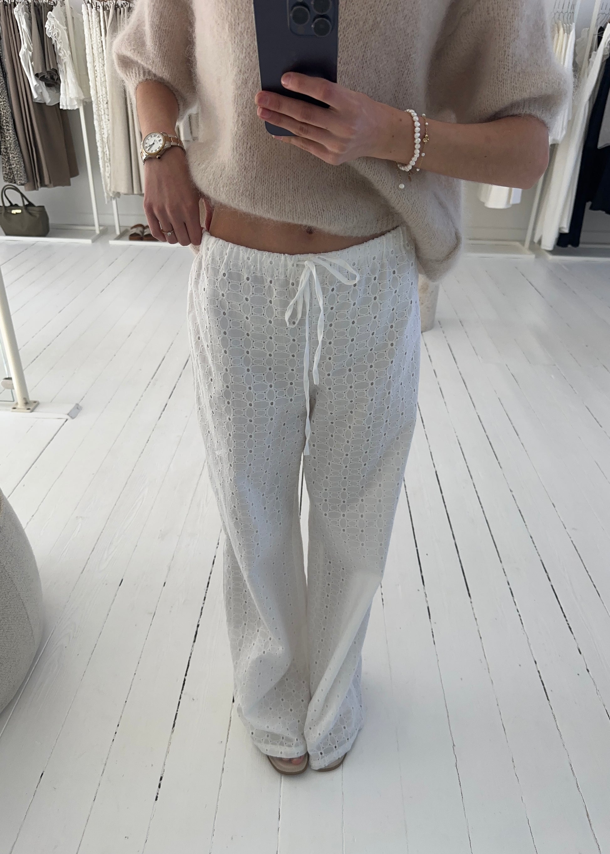 Vores smukke Caty Bukser i den fineste blondekvalitet, bukserne har bindebånd ved taljen.