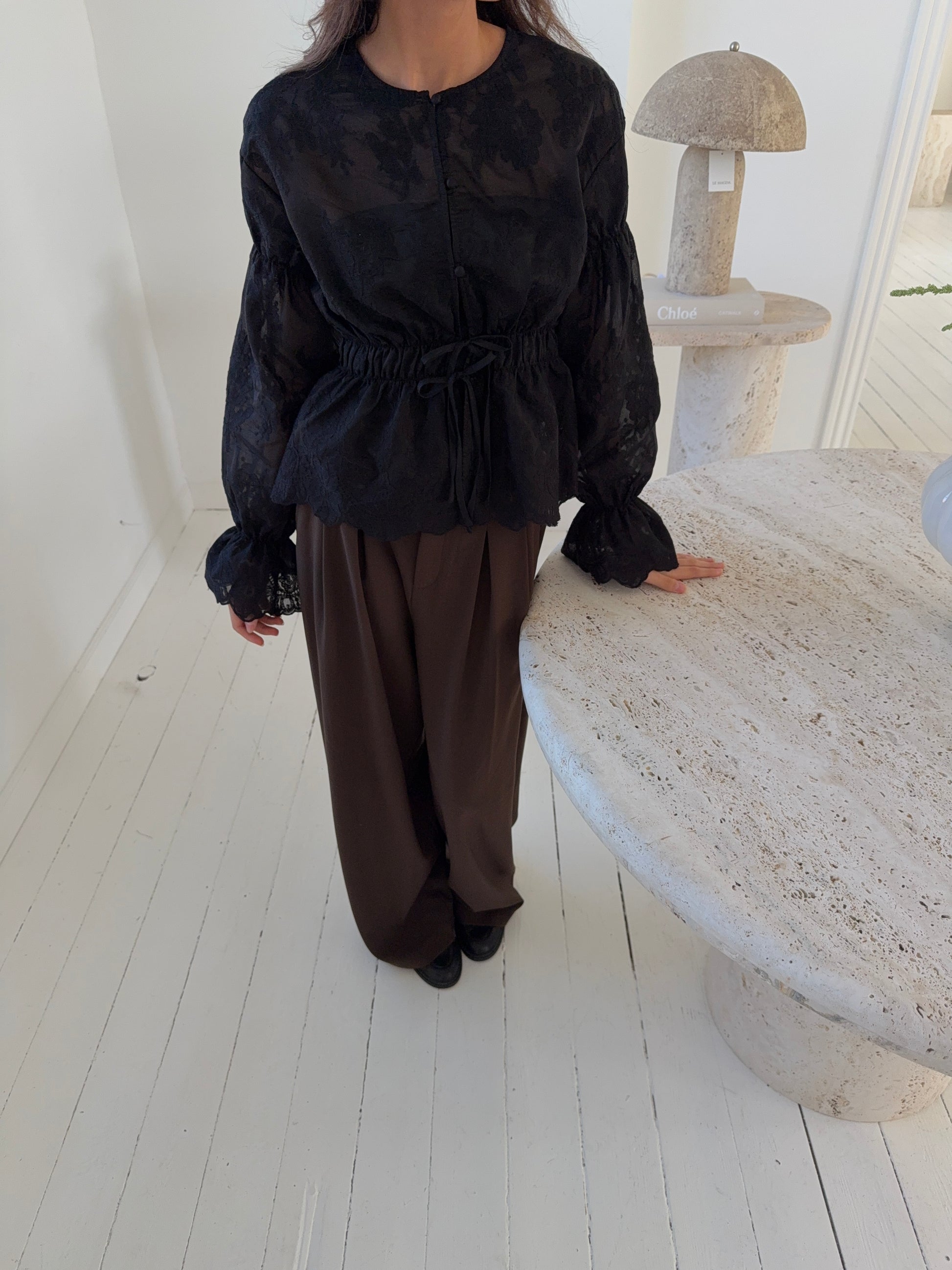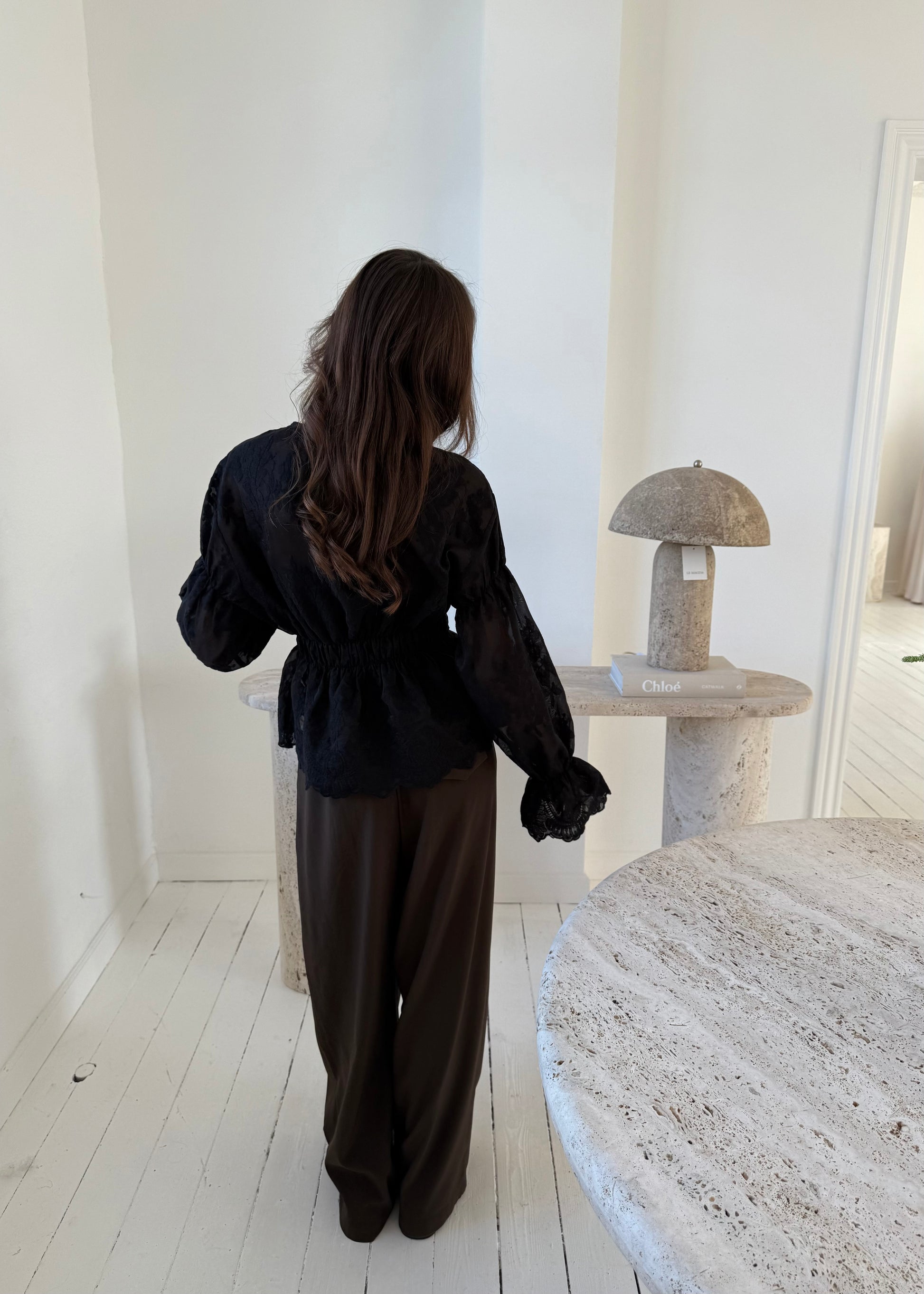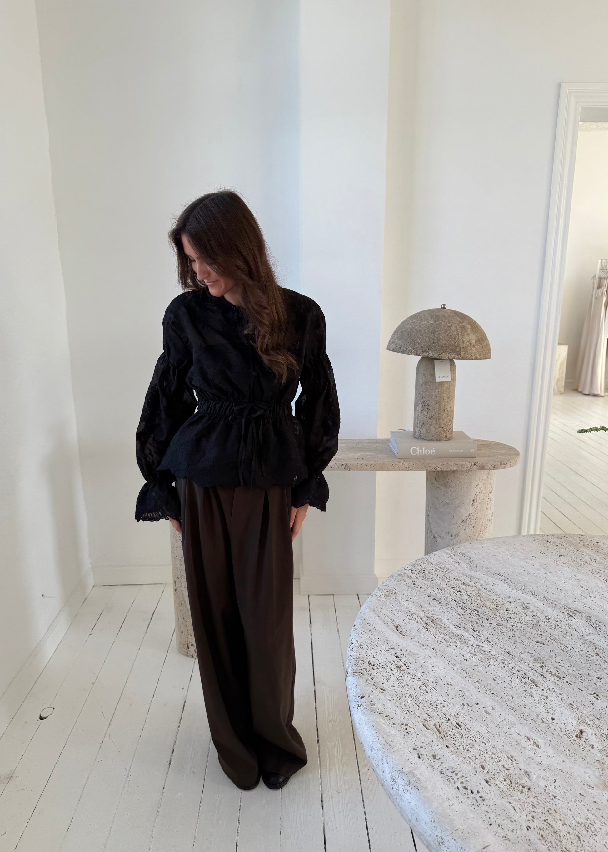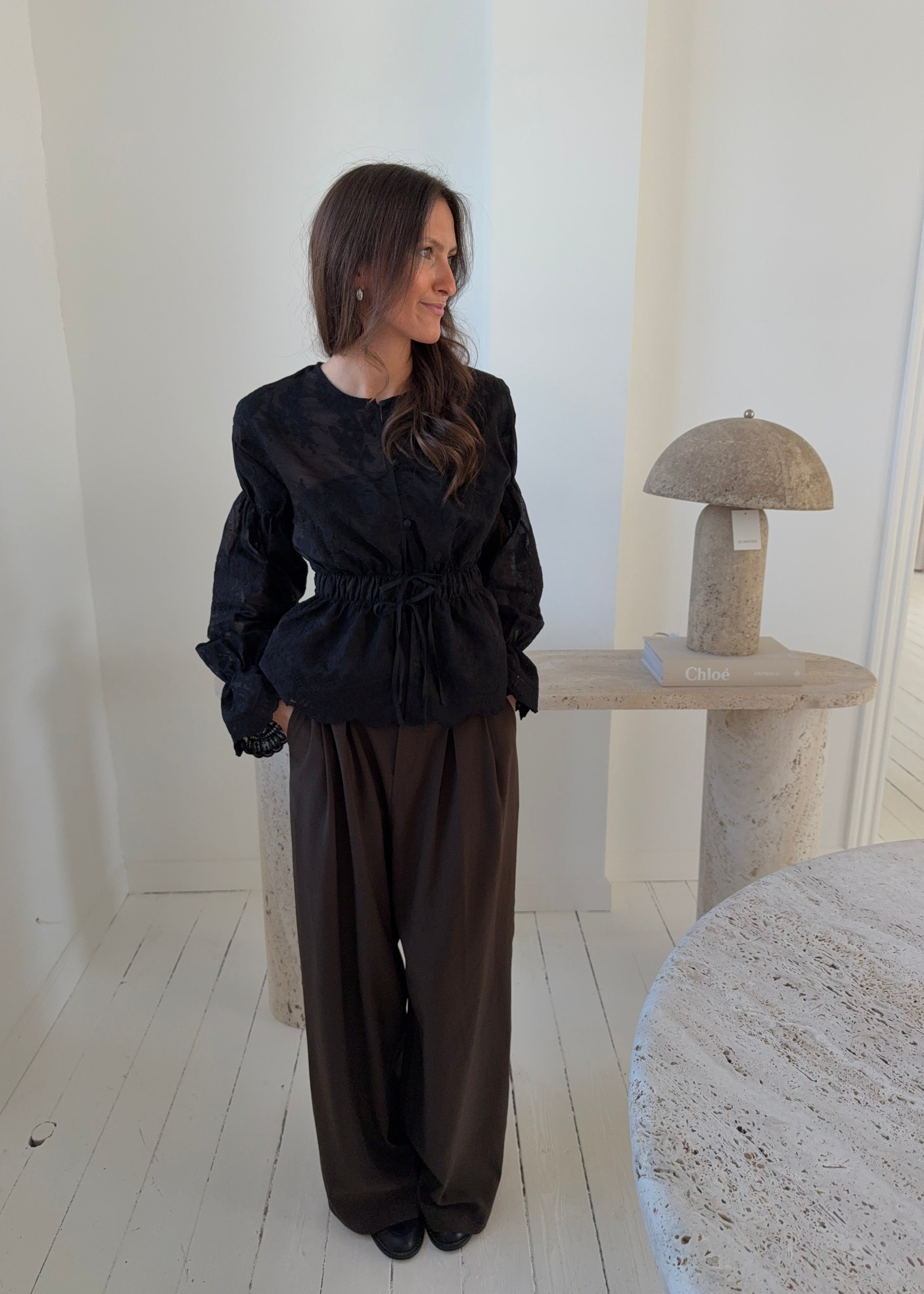 Vores smukke Hannah-MAGDA Skjorte i den fineste blonde kvalitet. Skjorten har bindebånd foran, og har store ballonærmer.