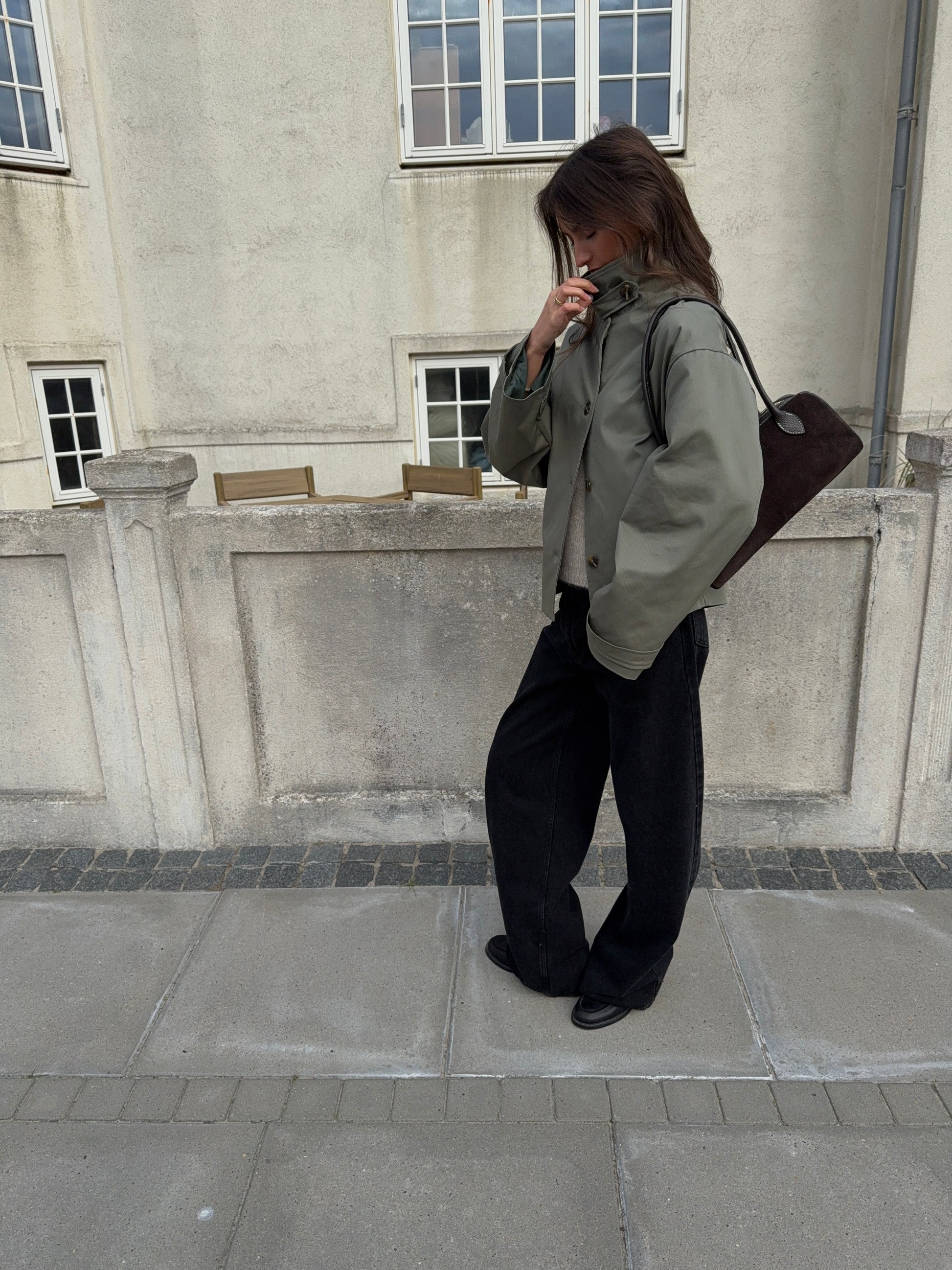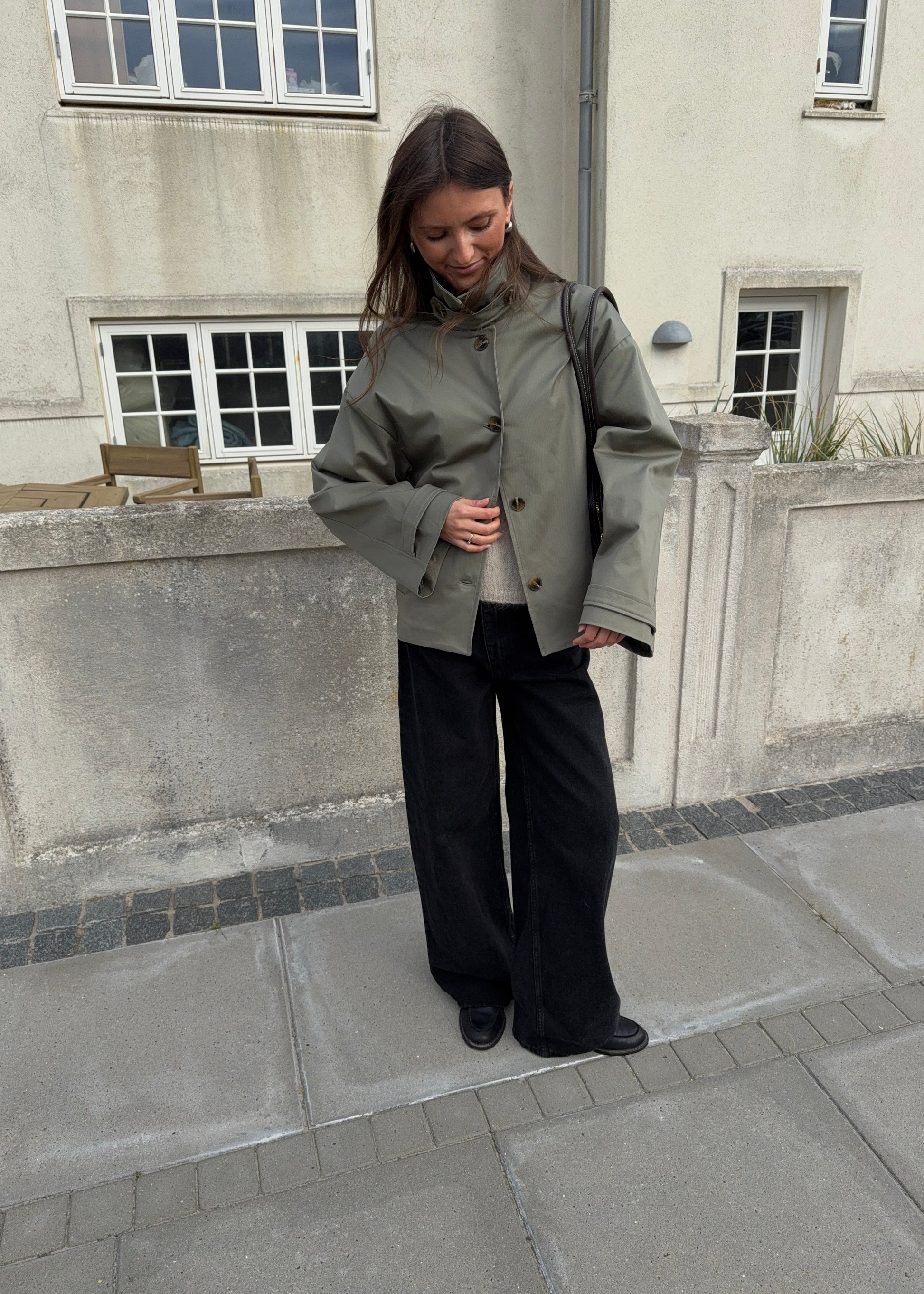 Vores smukke Melba-MAGDA Trenchcoat i et klassisk design. Kraven kan bukkes op og ned, og kan lukkes med knapper foran.