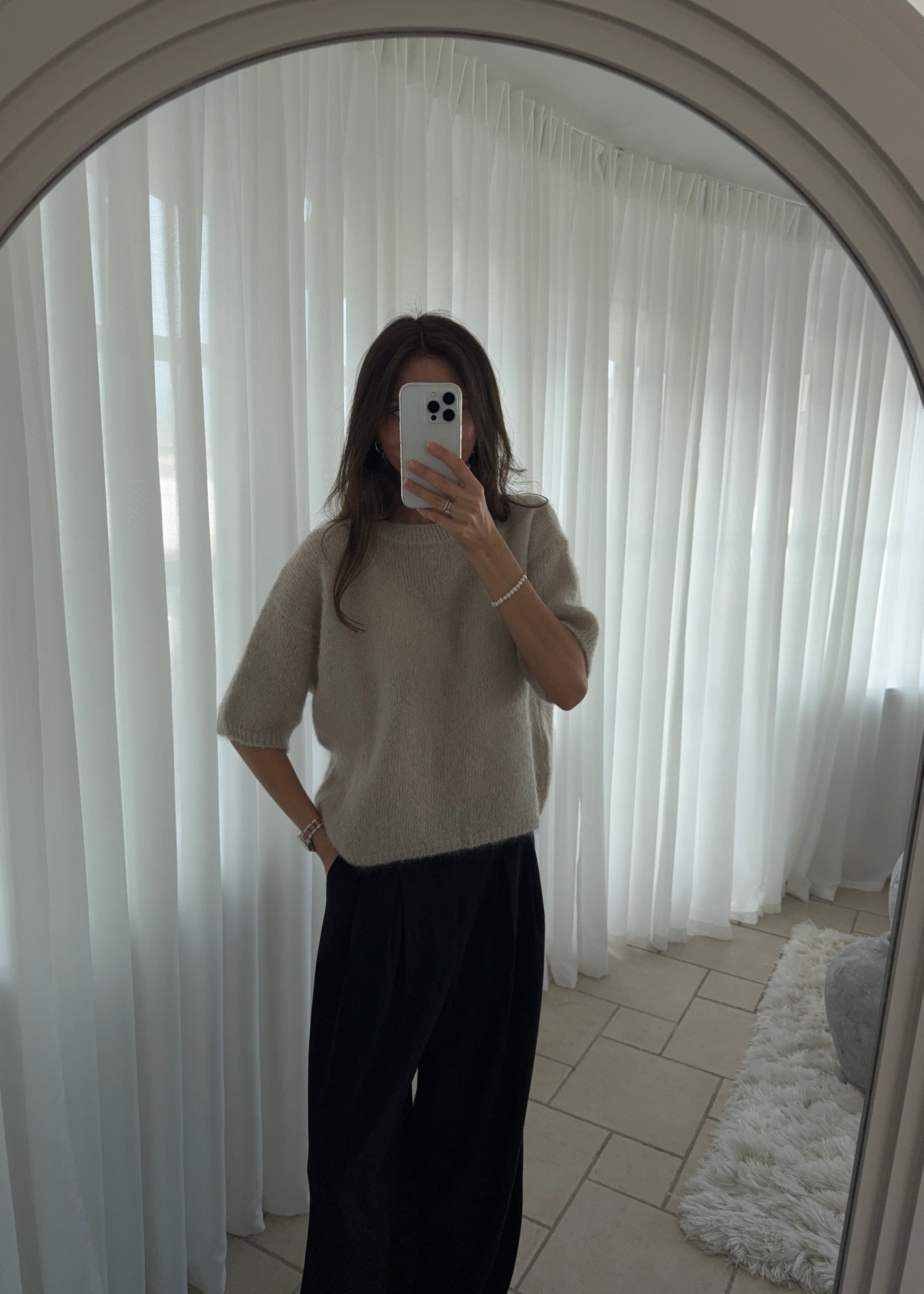 Vores Merle-MAGDA Sweater med korte ærmer. Strikken er blød og behagelig at have på.
