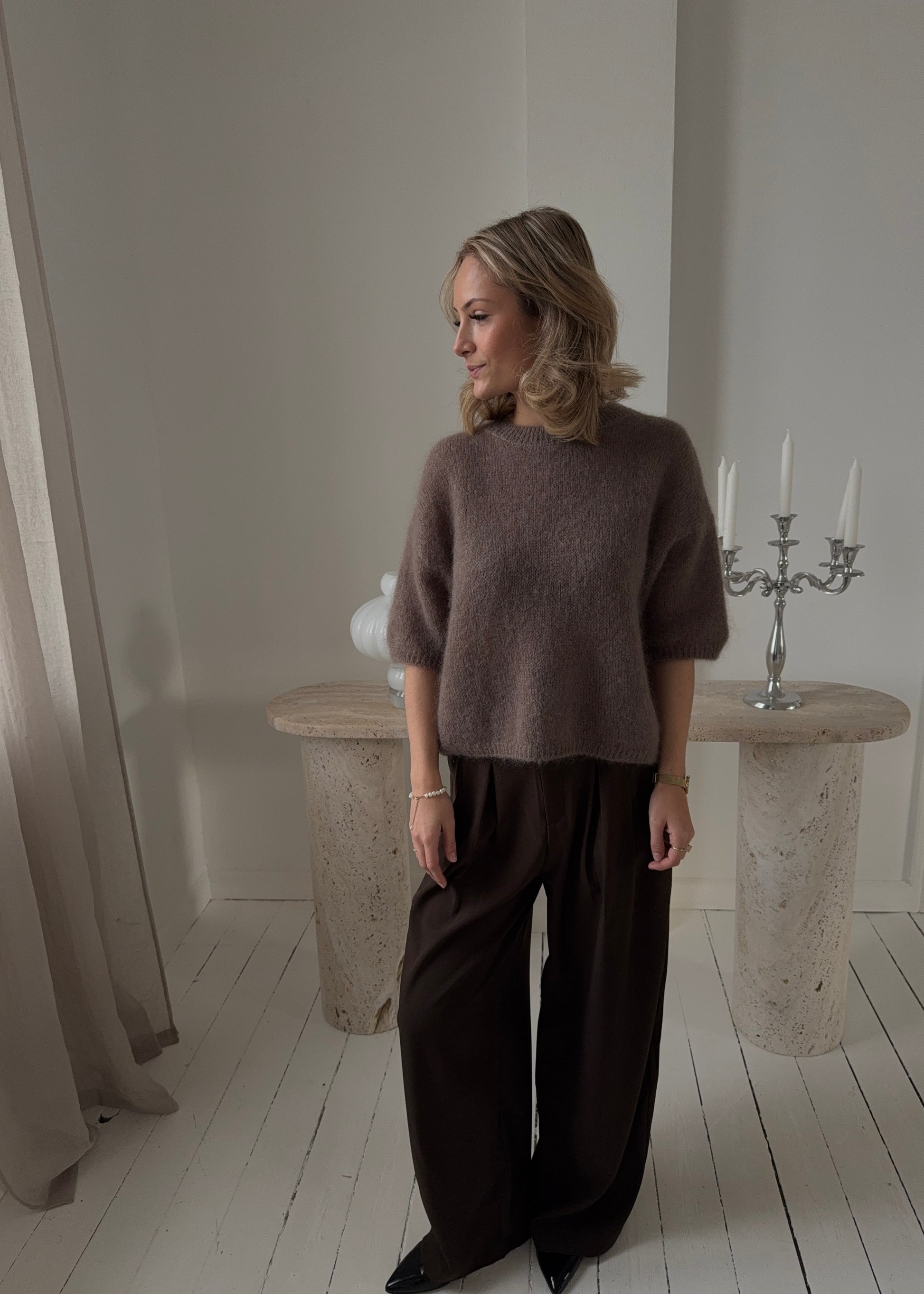 Vores Merle-MAGDA Sweater med korte ærmer. Strikken er blød og behagelig at have på.