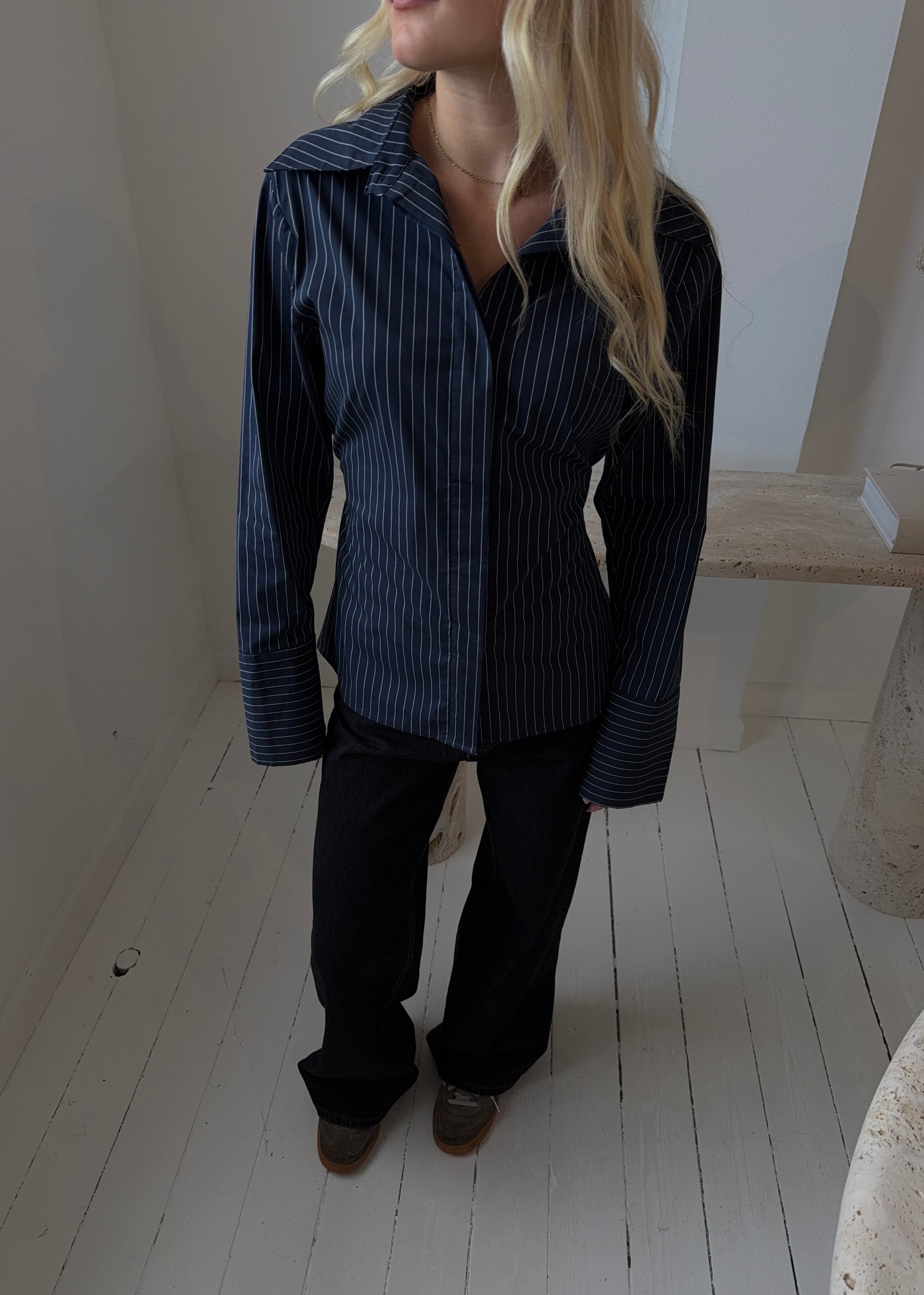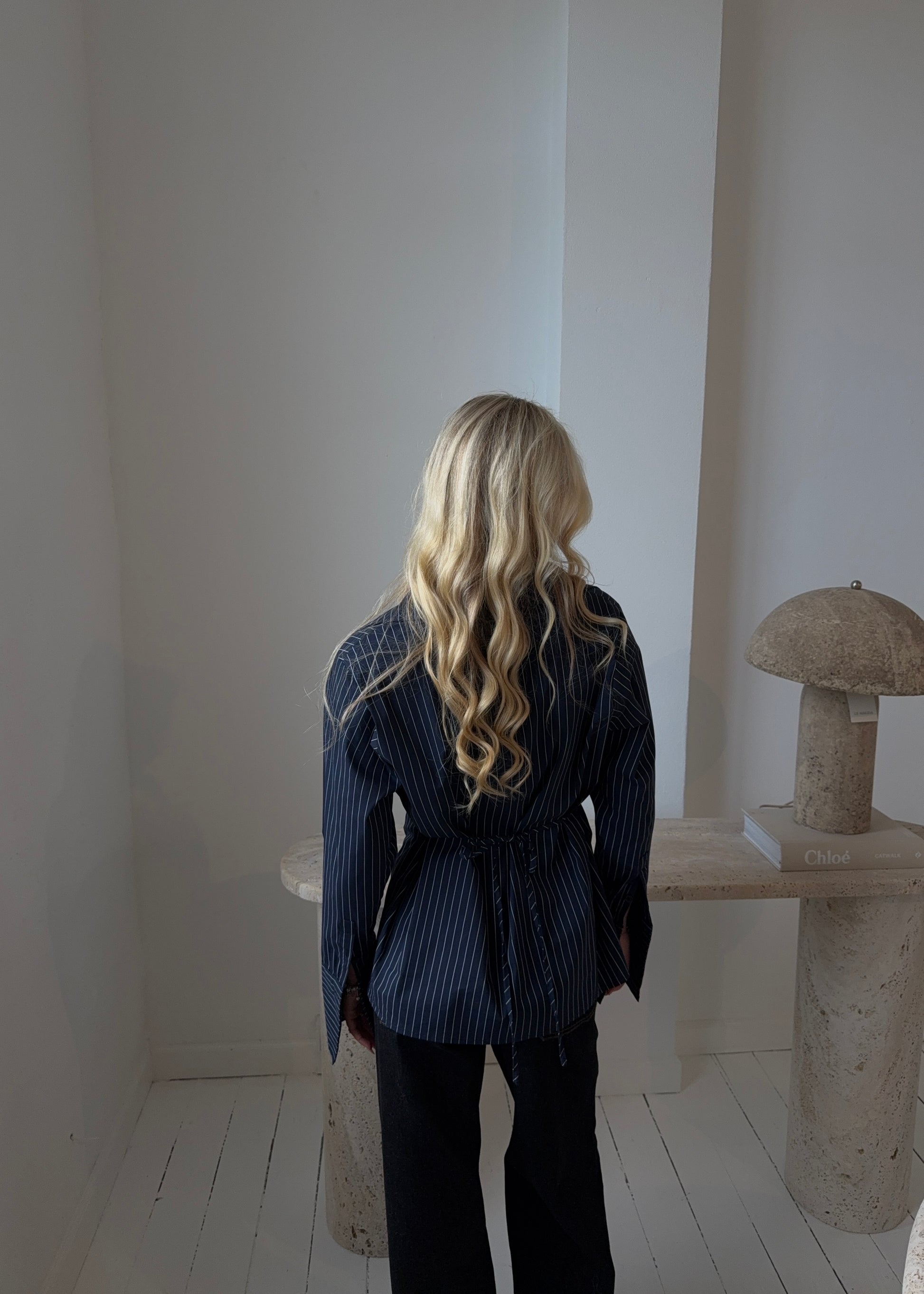 Vores smukke Rosa Fitted Shirt, som bindes bagpå i taljen og ærmerne på skjorten er brede.