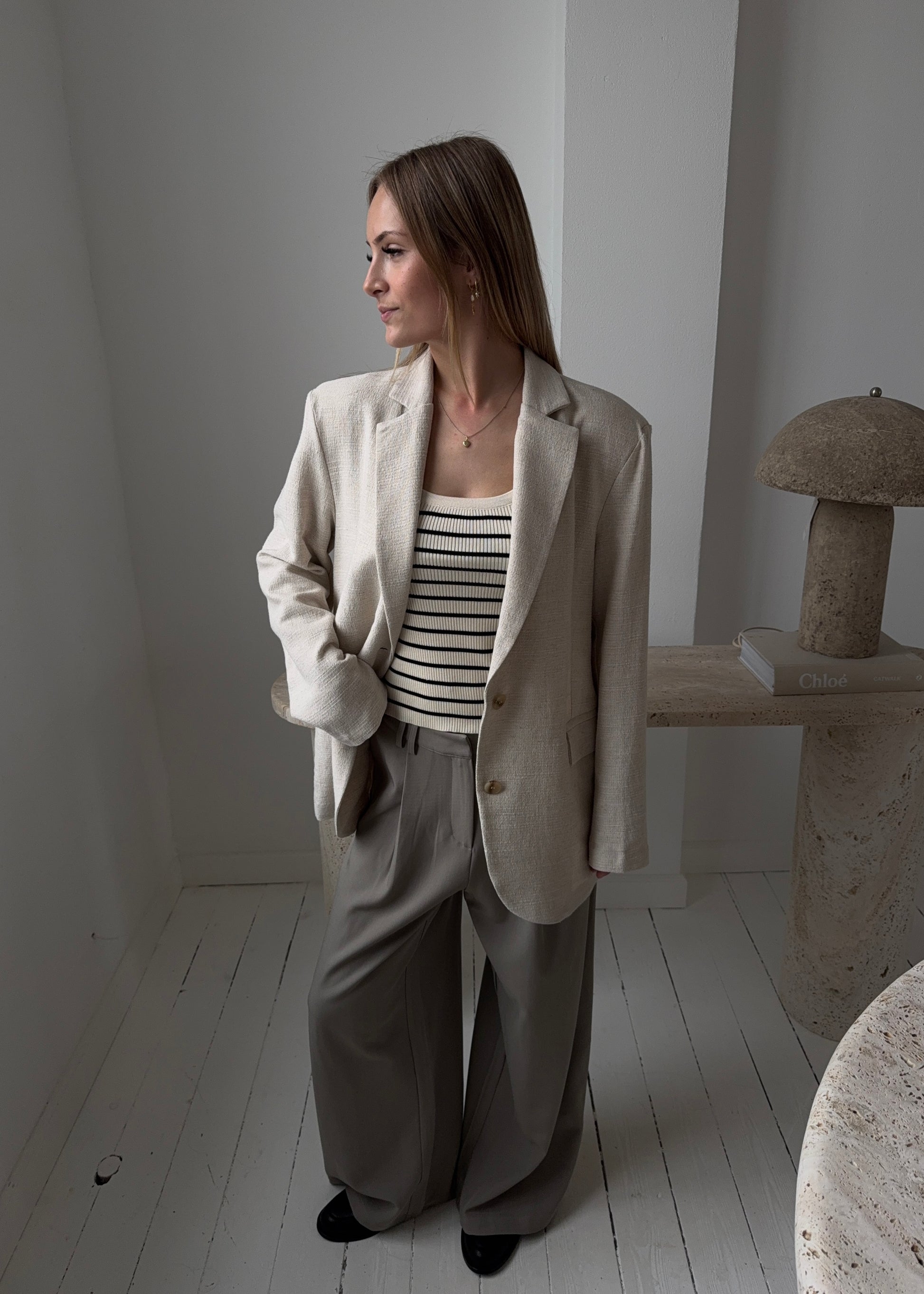 Vores smukke Spring-MAGDA Blazer i beige. Blazeren er lavet i en lækker kvalitet, som både er let og luftigt.